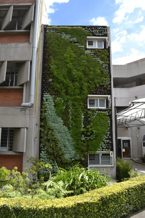 Cada uno de nuestros proyectos nos enorgullecen y queremos presentarte algunos de ellos. En el caso de muro exterior queremos presentarte el muro verde en el edificio de la facultad de Ecología en la UNAM. Un espacio de color en el edificio que no sólo lo hace ver bonito si no que tiene beneficios como la reducción de ruido, disminuye en calor y hace más lento el proceso de desgaste del edificio.
